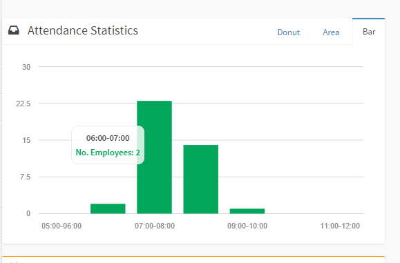 The attendance statistics is a simple tool that show graphical representation on how employees came to work on that very day.