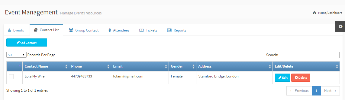 Create and Manage individual contact list Contact Name: Name of the contact Phone: Contact phone number Email: Contact email address Gender: Male or Female Address.: Contact address Edit/Delete: make changes |