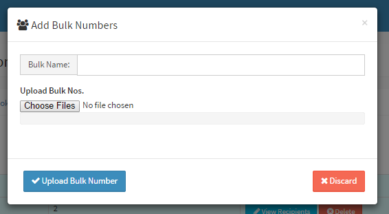 Add Group Contact/ Add bulk Numbers Fill the following fields to complete the form Bulk Name: Give a bulk name Choose Files: Select the csv or excel or txt file from your local directory.