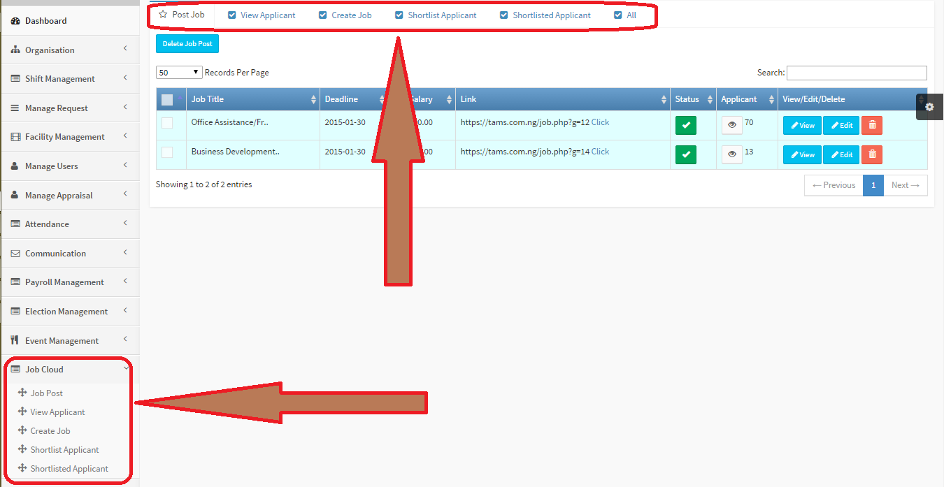 Create your jobs and let TAMS get you the applicants with Job Cloud module With the following sub-modules on board: 1. Job Post 3. Create Job |