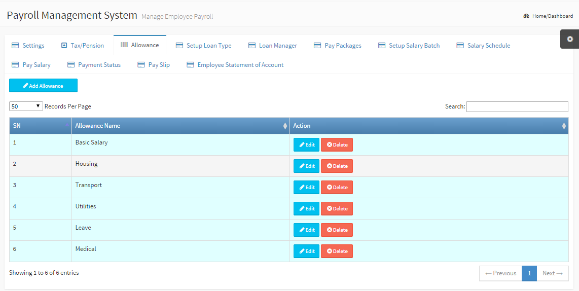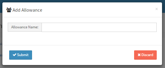 Add Allowance Fill the following fields to complete the form Allowance Name: Give the allowance a name Click Submit button to complete the process |