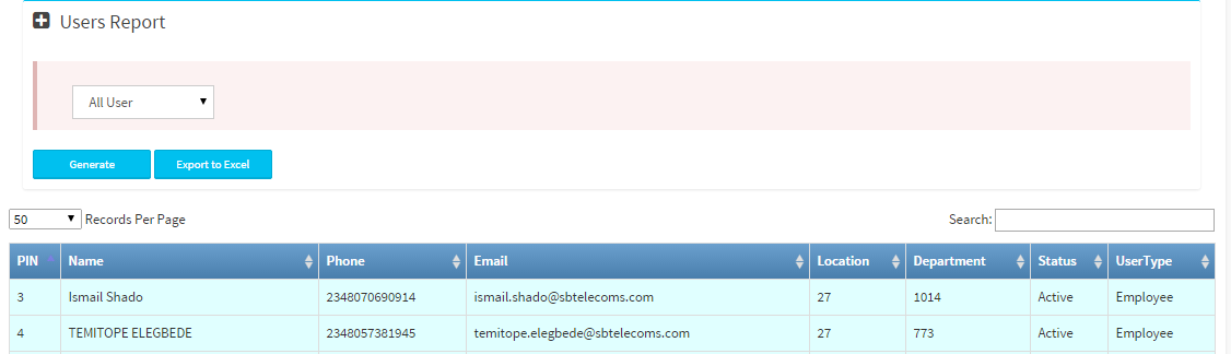 The User Report Sub-Module for generating reports on users(employees, visitors, guest, guard,...) |