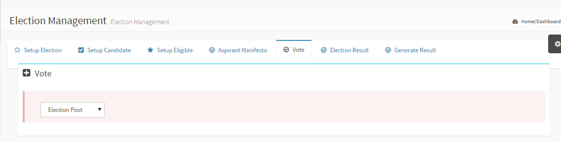 On completion of the setting up of Election, Candidate and Eligible. An eligibleuser can now log into his/her account and vote. 1. Select an Election